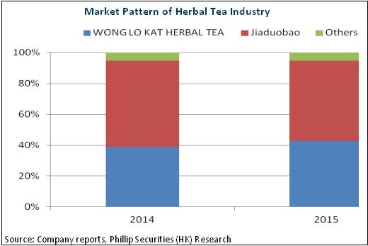 Additionally, we are optimistic about the improvements in profitability of Wong Lo Kat. Previously, the expense pressure on the two competitors was immense. Net profit margin of Wong Lo Kat plunged from about 20% to less than 5%, far lower the industry. Nevertheless, presently Jiaduobao emphasizes cost control and reduces advertising investment, so the expense pressure on the two parties was alleviated, and the profitability of Wong Lo Kat is projected to improve. In 2015, net profit margin of Wong Lo Kat rose by 0.23 percentage points to 5.03%.