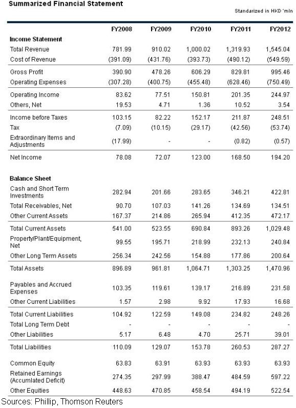- Deterioration in export business: the group has recorded a significant drop in the export business to HK$36.1 million from HK$115.3 million in 2012. The export business only accounted for less than 3% of the total revenue