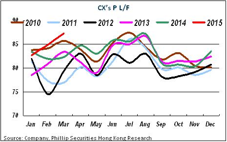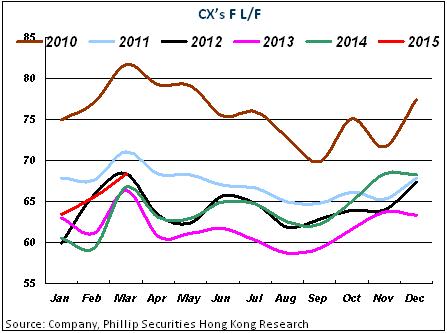 Driven by strong freight demand of North American routes, and stronger freight demand of major export markets in Hong Kong and the Chinese mainland than that in previous years, the Company's freight business has improved since the fourth quarter of last year, and the trend has continued to the first quarter of 2015. In addition, the Company's air freight business has also benefited from port congestion in the American West. RFTK in the first quarter rose 15.4 % to 2.55 billion revenue tone kilometers yoy, with the freight capacity increased by 9.8%, and freight and mail load factor was 65.8%, up 3.2 percents.