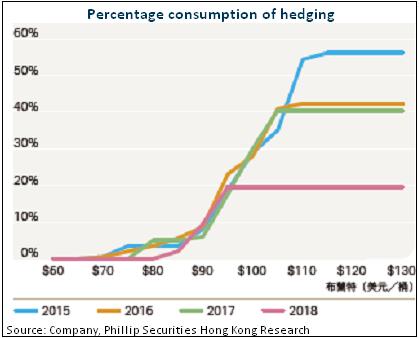 The Company has extended fuel hedging contracts to 2018. The fuel hedging accounts for 61% in 2015 and hedging oil price is HKD 95; 60%, 50% and 37% and HKD 85, HKD 89 and HKD 82 from 2016 to 2018.We believe that fuel hedging is a buffer for the Company's result. At least in a short run there is great possibility for current oil prices to hover low, and fuel hedging makes it difficult for such companies obtain the full benefits from lower oil prices. However, on the other hand, if future oil prices rise (higher than USD$60), the Company can avoid partial negative impact brought by bigger fuel costs.
