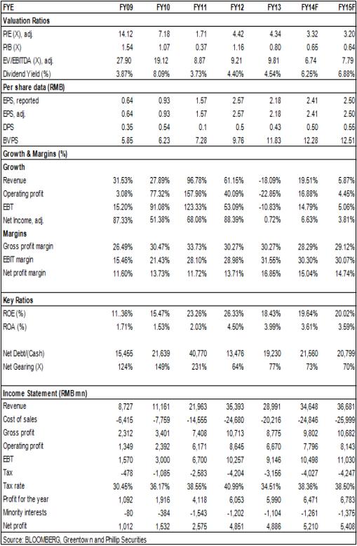 No matter who is the winner, both Green City's equity dispute and the rivalry with Shanghai Sunac GT Holding had the negative influences on GT China, and also did harm to the valuation of the company. In the future, GT China will face many challenges, including the sales, financing and competition pattern. But what can be sure of is that GT China will remain the major role in Chinese real estate, and the joint power of Kowloon Club and CCCG Ltd. will drive GT China to complete the integration of strategy and product, and to form the new competitive advantage. The current price is attractive, and some catalysts including good news from selling and rebuilding will boost the share price upwards. We give GT China "Buy" rating, with the target price of 10 HKD in the next 12 months, which is equivalent to 3.2 times the forward P/E of 2015.