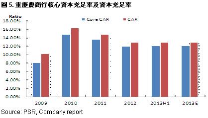 -Domestic banks started to use new rules to calculate the CAR in 2013, which caused the banks’ CAR to decrease obviously. By the end of 2Q2013, the Group’s Core Tier 1 ratio and CAR cut to 10.92% and 12.71% respectively, down 0.17ppts and 0.18ppts q-q. Even based on the previous calculation, the Core CAR and CAR increased by 0.07ppts and down 0.01ppts respectively, no big changes. Therefore the decrease of CAR led to the large increase of the bank’s capital pressure, which would affect the adjustment of capital expenditure projects, such as the amount of loans. In 1H2013, the Group’s net loans increased by 11% approximately, but obviously lower than the deposit growth as 15% during the same period;