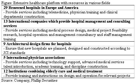 (1) Partner: the First Affiliated Hospitalof Xi`an Jiaotong University. Together with the partner, the company is going to build a branch of the First Affiliated Hospital. FAH is a leading comprehensive Grade III Class A hospital in Northwest China, with 2.25 million outpatient visits in 2015 and 2,541 beds. It is the leader in terms of medical technology and service quality in Northwest China, having 14 state-level key clinical subjects, 5 province level key clinical subjects and 7 province-level dominant subjects. Its outstanding physicians and doctors are widely recognized within the industry. The revenue of FAH reached around RMB3.5bn/4bn in 2015/2016. It is estimated that the supply chain business of FAH is worth RMB2bn (nearly half of the turnover).