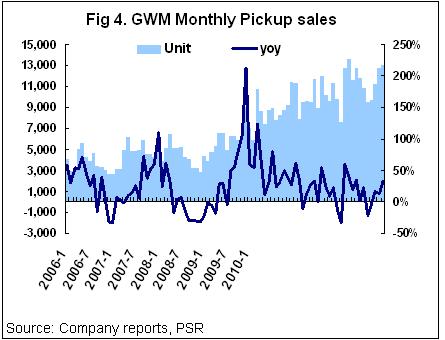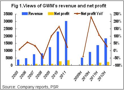 长城汽车为国内皮卡、经济型SUV细分市场的龙头,是在香港H股和内地A股上市的大型民营汽车企业。近年来公司向全车系综合厂商进军,相继推出数款小排量轿车、MPV、高端皮卡和城市SUV产品,并逐渐获得市场认可。目前公司在保定基地、天津基地共拥有80万辆整车及零部件生产能力。