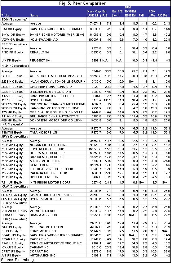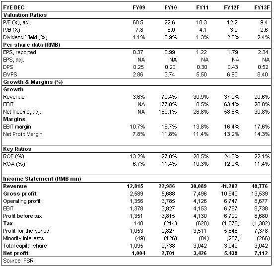 -估值与评级 凭藉高售价的SUV销量占比提升,长城汽车平均单车售价较同期增加了8%至7万元。专注SUV细分市场并一贯表现优秀令公司的盈利能力仍有向上空间,而中国方兴未艾的SUV消费热潮预计将持续到2015年,公司未来仍值得关注。我们认为公司值得给予高於普通乘用车的估值比率,我们的12个月目标价32港元相对於2013年预期EPS 11倍市盈率,较27.3港元的现价高17.6%,因此给予“增持”的投资评级。