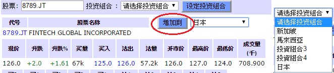 3.) 自设报价投资组合数目增至5个。此外,用户还可自由更改组合名称,有利作出主题监察。个股报价版面内,可按键加入组合内。