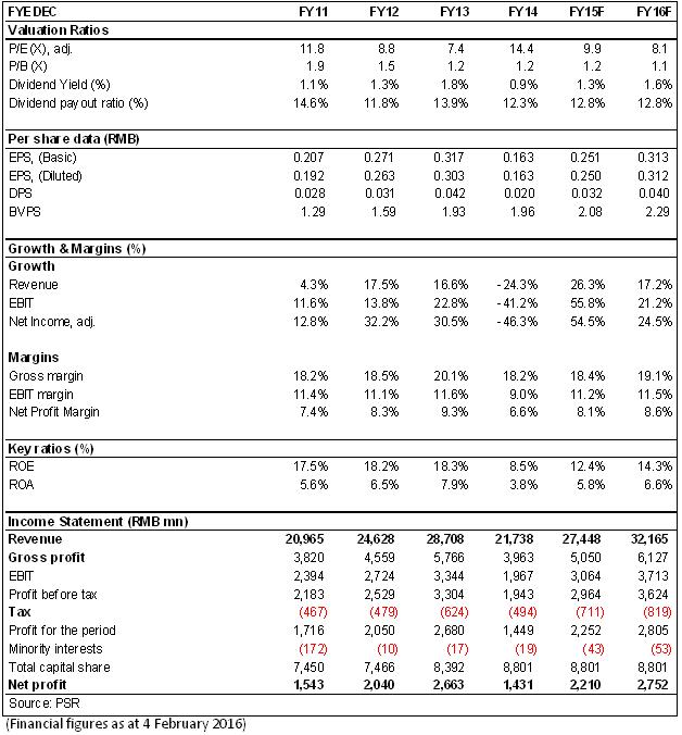 管理层对2016年前景较有较强信心,销量目标定为60万部,较2015年增长约18%,我们认为,除了购置税优惠政策的刺激,管理层的底气来自於不断强化的新品阵容。根据最新数据,我们下调目标价至3.65港元,对应2016年9.9倍预计市盈率,维持“买入”评级。(现价截至2月4日)