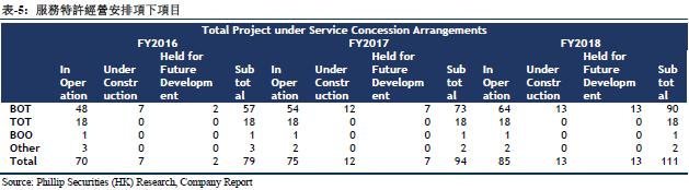- BT模式:於2016年,公司有1个采用BT项目模式经营的项目。由於中国因法律限制而不再接纳BT项目模式,公司自2016年12月31日起并无就任何新项目采用BT项目模式。