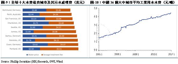 根据GWI发布的2017年度全球水价白皮书,中国水价远低於世界其他国家,中国最贵的城市水价还不及全球最贵城市水价的十分之一,污水处理费也远低於全球水价最贵十大城市,中国水价及污水处理费还有很大提升空间。