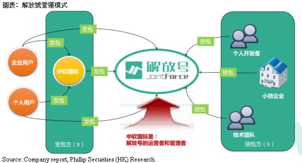 有见及此,中软在2014年底推出众包平台「解放号」,把公司的中小型项目转包出去。这个做法不但有助中软释放资源并集中在大型客户身上,同时又不用完全放弃中小型客户,更能从中赚取稳定收入,因此解放号的出现帮助中软优化营运模式。