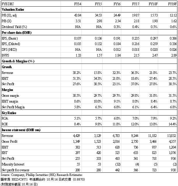 基於上述假设,我们预计纯利增长在2018/19年分别为28/31%,达至7.2/9.4亿人民币。