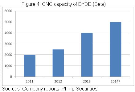 就产能来看,近两年公司CNC机床翻番至四千台,为市场中的主要扩张力量,并满足客户对於金属外壳数量和品质的需求。而据规划,14年公司预计再新增一千台CNC机床,将进一步满足金属壳业务的扩张,支撑公司的成长。