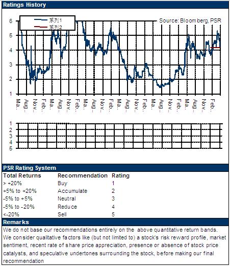 估值方面,上市以来公司市盈率平均为10.61倍。我们以为,智慧化时代的成长机遇具备持续性,即使保守给予其对应14年每股收益平均市盈率的估值,目标价可达6港元,维持“增持”评级。