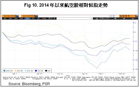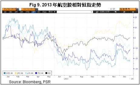 我们预计2014年的国际油价仍有望保持小幅波动,人民币升值幅度将放缓。鉴於全球经济的复苏步伐还非常缓慢,且存在反复可能,我们认为,内地航空业消费升级大周期的拐点还未到来,短期内的小幅反弹可期但难言反转,因此我们给予行业“同步大市”的评级。但同时,经过一年多的大幅向下调整,航企股价再次显着走低的可能性不大。