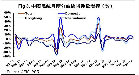 -具体来看,客运方面,国际航线高增长的行情仍在继续,前11个月,国内,地区和国际航线的旅客周转量分别同比增长12.5%,5.9%和15.3%。货运方面,需求从前两年的衰退中缓慢复苏,主要是受国际需求止跌企稳和国内需求继续小幅提升带动。