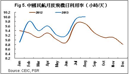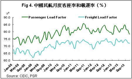 从航空公司运力引进计划来看,预计14年运力增速维持在11-12%上下,供需弱平衡持续,在此前提下,客座率有望维持稳定,而13年的低基数效应有助於票价水平的企稳,个别季节甚至会出现小幅回升。