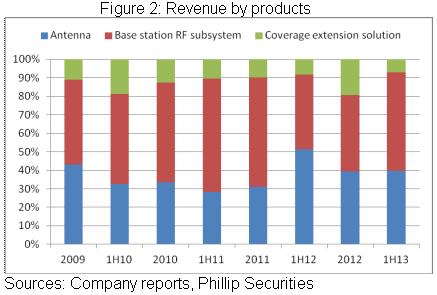 13年上半年,儘管天線系統產品及覆蓋延伸方案產品銷售小幅下降,但公司運用雙頻/多頻、3G及LTE產品實現同比逾八成的增長,最終帶動總營收增長逾一成,業績雖然仍然下降,但主要是政府返稅補貼等營業外收入減少所致。綜合來看,上半年公司已初現經營扭轉之跡象。