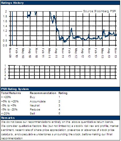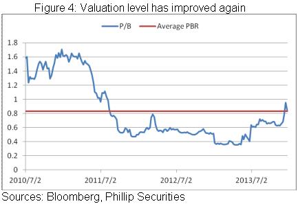 自上市後,公司估值及一直走低,此前市淨率更低至0.36倍。我們以為,在新的市場機遇及競爭形勢下,公司估值有望回歸正常水準。我們暫予其0.9倍對應13年每股帳面價值估值,目標價為1.48港元,為增持評級。