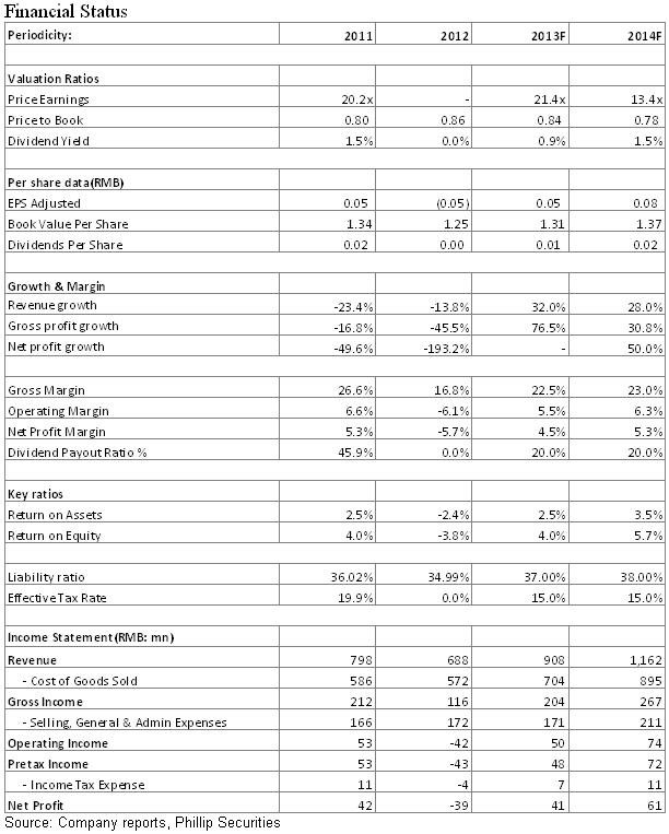 估值方面,自上市後,公司估值及一直走低,此前市淨率更低至0.36倍。我們以為,在新的市場機遇及競爭形勢下,公司估值有望回歸正常水準。我們暫予其0.9倍對應13年每股帳面價值估值,目標價為1.48港元,為增持評級。