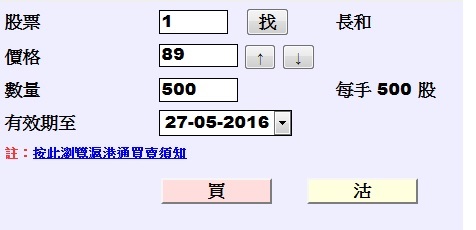 此下單視窗支援香港股票及滬股通股票報價。香港股票的買/賣盤有效期可長達30個公曆日。