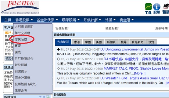 POEMS中的新版大利市可與借貨沽空及輝立交易場互相切換,下面將會有詳細介紹︰