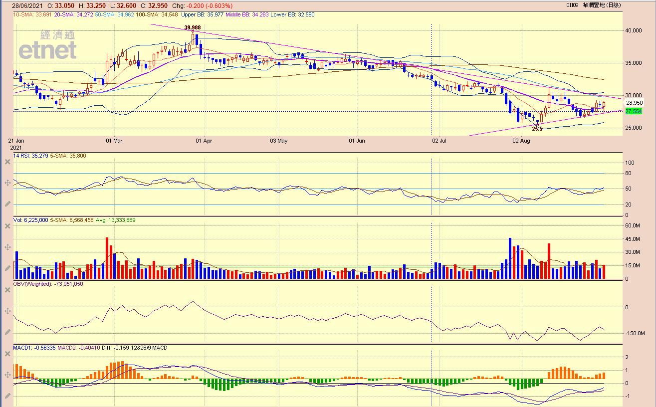 國内樓價為中央主要打壓和調控的對象,現時二手房貸更是困難重重,二手成交脆弱。内房的前景較爲昏暗。雖然中期業績理想,派息亦增加,但短線目標只望30元。由於內房沒有國策支持,相信比較難突破;建議靜待23.3-24元才入手。