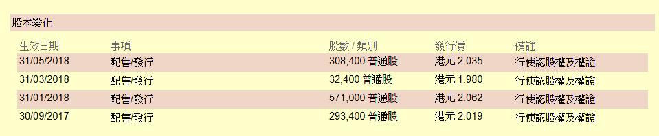 過往股本變化
