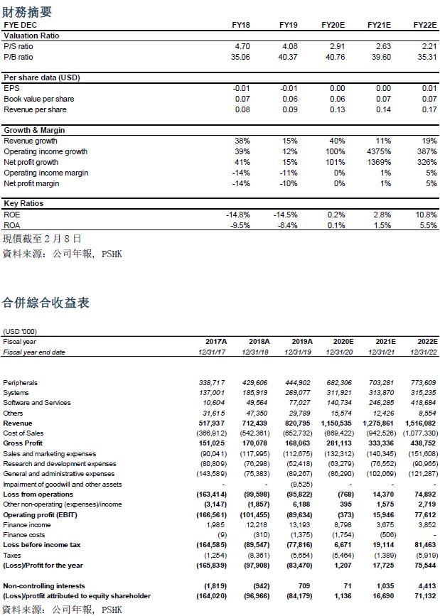 軟件及服務方面,公司管理層表示有信心通過擴大用戶群和用戶活躍度發展軟件平台,以及繼續投資以擴大公司快速增長的高利潤服務業務。公司繼續拓展馬來西亞和菲律賓等等區域性國家,我們預計其軟件及服務2020年收入達1.41億美元,同比增長達82.7%。我們預計下年軟件及服務收入達2.46億美元,同比增長75%。