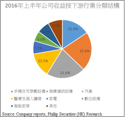 手機及可穿戴設備:1H2016該分部的收入較2015年同期下跌超過百分之三十,預期2H2016將恢復增長,該業務分部2017年預計表現較好。
