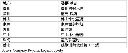 龍光地產於上述列表中的大部分城市均有房地產發展項目和土地儲備,因此,我們預料龍光地產將會直接受惠於中國的粵港澳大灣區國家發展政策。