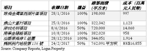 除了發展早前收購的土地外,龍光地產在2016年度一直積極收購位於中國的土地及項目,並於2017年初開始收購位於香港的項目。