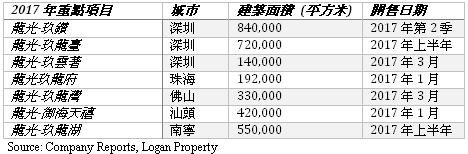 強勁的銷售預計將持續: 龍光地產在2017年的首三個月於合約銷售與2016年同期相比錄得大幅增長。